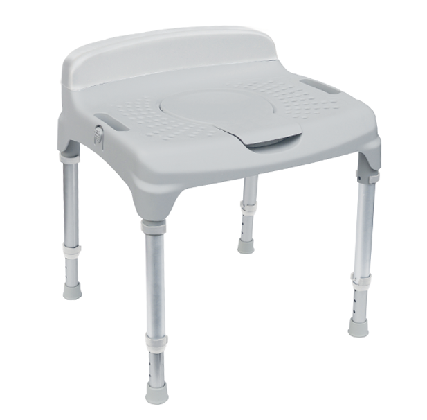 AQ-TICA ESSENTIAL stóllinn hefur tvær aðgerðir: hann hjálpar þér við líkamshirðu og persónulega hreinlæti. Hann má nota sem klósettstól eða sturtustól og er fáanlegur í gráum lit. AQ-TICA kemur sem sett í kassa og auðvelt er að setja hann upp án verkfæra.