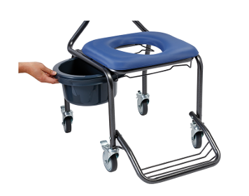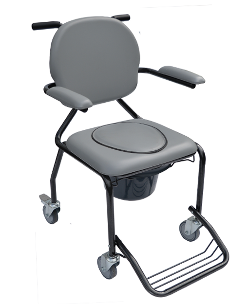 BEST’UP ON CASTORS er hágæða salernisstóll með fjórum hjólum sem eru með stöðurafmagnsvörn og þægilegri, færanlegri sætisplötu. Tvö ýtuhandföng ásamt uppsveifluðum armpúðum og fótskemil gera sjúklingaflutninga örugga og auðvelda.