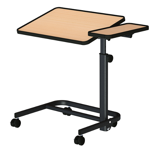 Stillanlegt rúmborð með hliðarplötu á hjólum sem hægt er að halla. 60 cm og 80 cm breidd með kant.