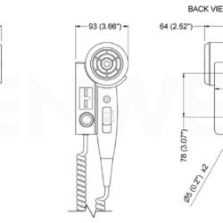 Þurrkurinn verður að vera tengdur við rafmagn fyrir eitt skipti og einn af þremur stöðum verður að vera valinn með rofanum sem er staðsettur á bakhlið byssuhandfangsins. Þrjár stöðurnar eru „I“ – lághraði/lágur hitastigseining (heildarafl 500 W), „II“ – háhraði/millihitaskeið (heildarafl 1005 W), „III“ – háhraði/ hámarks hitastigseining (heildarafl 1800 W). Það er takki á handfanginu til að slökkva á hitastigseiningunni og fá kaldan loftstraum.