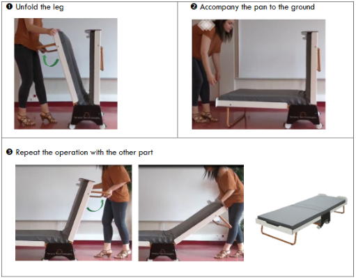 MAX er auka samanbrjótanlegur rúm fyrir fylgdarmenn. Hugsað fyrir mikla notkun á sjúkrahúsum. Þökk sé hagkvæmum málum sínum býður MAX bæði upp á auðvelda notkun og sparnað á plássi. Samsetning þess hefur verið hönnuð til að auðvelda daglega notkun samanbrjótanlegs rúms, en fyrst og fremst til að einfalda venjulega viðhald þess. Reyndar er dýnunni haldið uppi af stuðningi úr hvítu gerviefni sem er mun auðveldara að þrífa en botn úr spjöldum eða rafsuðuðum grindum.