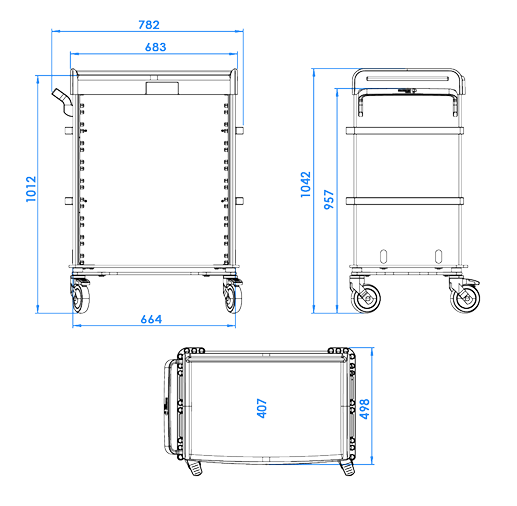 Fáanlegt í útgáfum með búnaði: Án skúffa (MO-M60009), Svæfingarvagn (PP-M60009-ANV2) / Meðferðarvagn (PP-M60009-V1) / Meðferðarvagn (PP-M60009-V2)