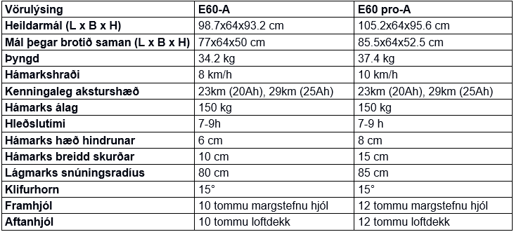 | Kenningaleg aksturshæð | 23km (20Ah), 29km (25Ah) | 23km (20Ah), 29km (25Ah) |