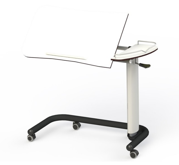 2 – Þægindi: Auðvelt er að stilla hæðina með einföldum handfangi. Borðið er síðan stillt í þá stöðu sem óskað er eftir. Stóri, hallandi bakkinn er með rekki til að koma í veg fyrir að hlutir detti.