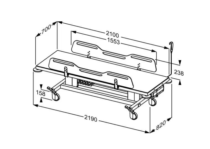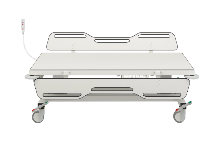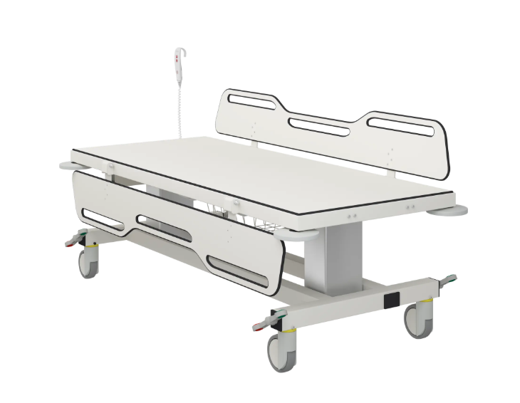 Skiptivagn með rafknúinni hæðarstillingu sem hægt er að færa til að hámarka lögun sjúklingsins. Hjálpaðu umönnunaraðila að veita viðkomandi viðeigandi umönnun.