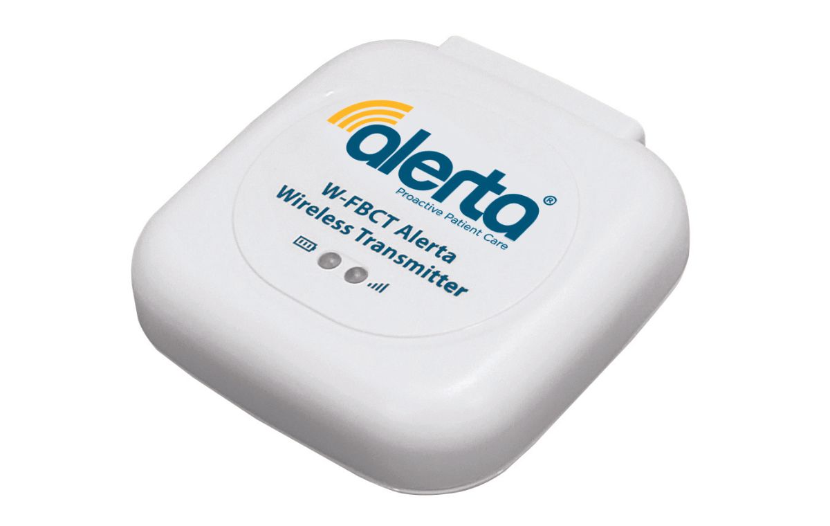 Þráðlausi sendirinn Alerta er notaður til að seinka viðvörunarhljóðinu til að draga úr falskum viðvörunum þegar notandinn er að færa sig í rétta stöðu (eingöngu fyrir Alerta-mats í rúmi og stól).
