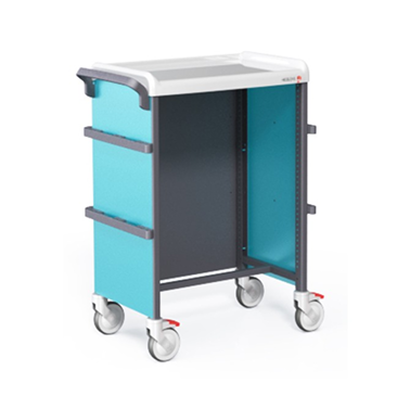 Einfaldur og skilvirkur Gueridon vagn fyrir daglega notkun með efri bakka. Hægt er að útbúa framhliðina með fjölbreyttum fylgihlutum og skúffum. Hliðarslóðirnar hámarka geymslupláss. Handfangið og easymov’ hugmyndin gera flutninginn auðveldan og hjálpar til við að berjast gegn stoðkerfisvandamálum hjá umönnunaraðilum.