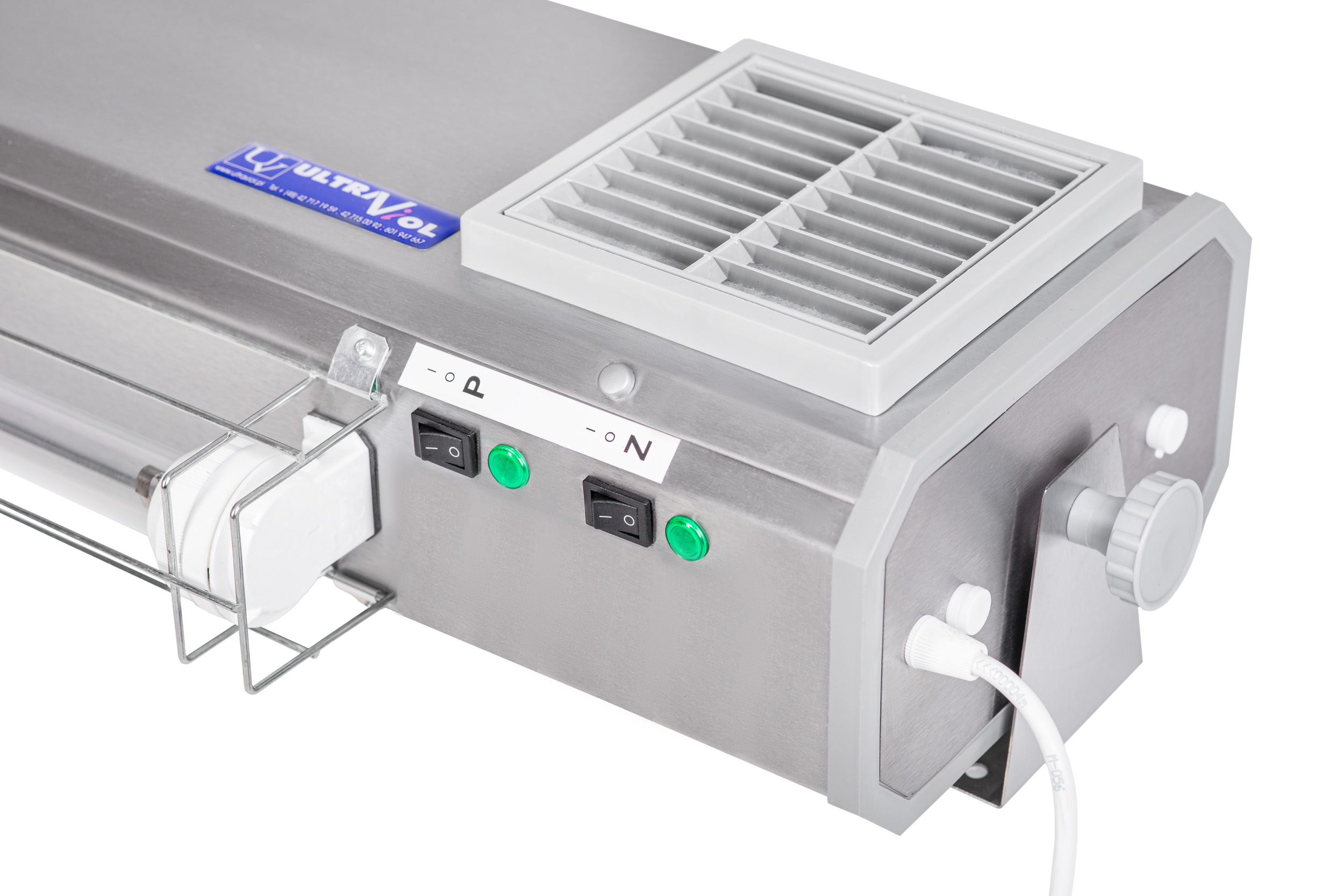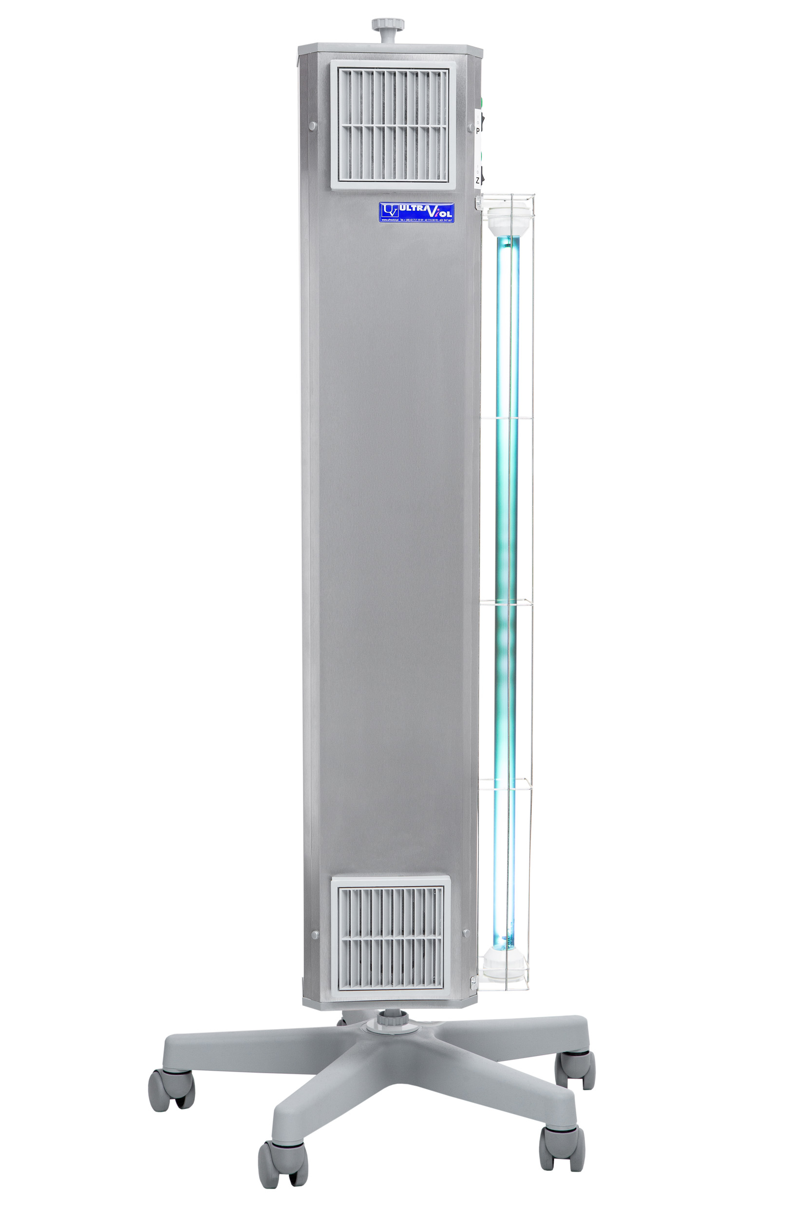 Tvöföld notkun UV-C flæðis-sýklaeyðandi lampar með ytri UV-C peru með beinni virkni tryggja alhliða sótthreinsun. Þeir bjóða upp á möguleika á öflugri sótthreinsun loftsins í návist fólks (UV-C flæðishólf – virkni I) og beinni sótthreinsun á öllu herberginu þegar starfsfólk og sjúklingar eru utan herbergisins (UV-C bein geislunarlampi – virkni II). Hægt er að kveikja og slökkva á virkninni sérstaklega eða báðum í einu.